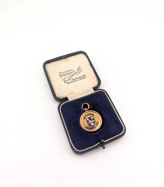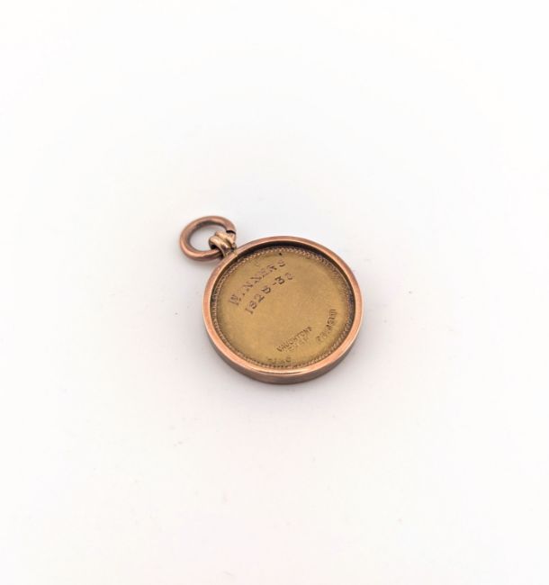 Reverse – 'WINNERS 1928-30' script, hallmarks '9' '.375' 'anchor' 'E'.