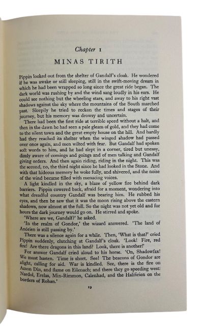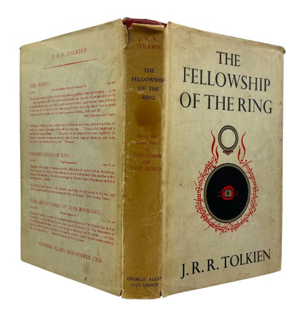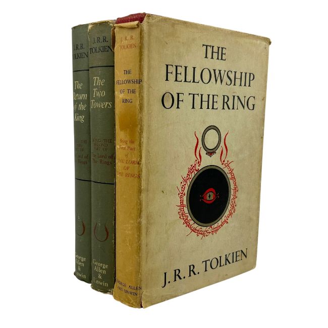 Bound in the publisher's cloth, with the unclipped dust wrappers. Externally, very smart, with a few marks to the cloth. The odd light mark to endpapers. Dust wrappers are also very good, with light edge wear, heavier to The Fellowship and The Two Towers, with a few chips to the backstrip of The Fellowship. Archival tape repair to the verso of the front panel of The Two Towers. Sunning to the spines of two volumes, with the odd mark. Internally, firmly bound with bright, clean pages.