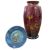Overall good condition with general wear commensurate with age. Lidded vase with extensive repairs to body and lid. Some wear to gilding present on each. Crazing present throughout.