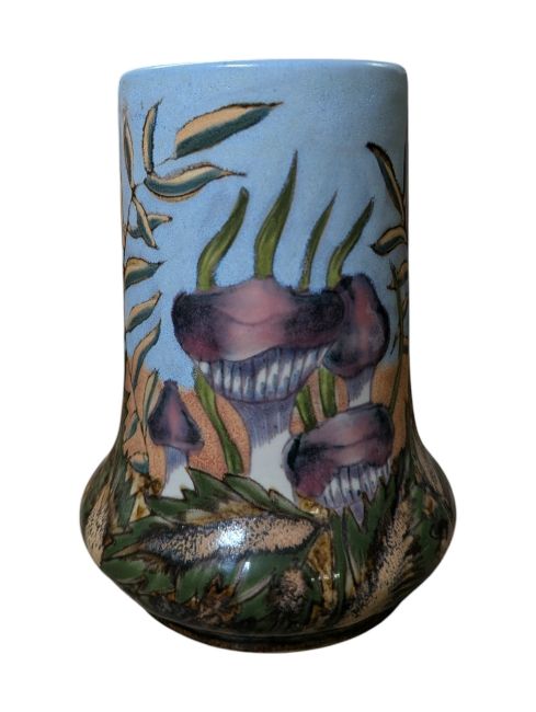 Straight with squatted end vase decorated with mushrooms and foliate motifs