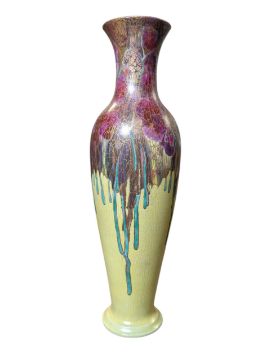 Baluster flared vase & centrepiece bowl decorated with lustre wisteria motifs on yellow mottled ground