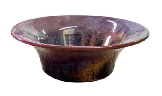 Two lustre finish pieces, to include a bulbous green, blue & lilac glaze vase, together with a purple and pink glaze flared bowl