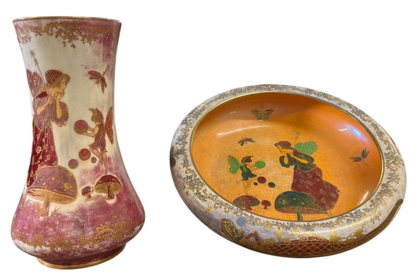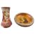 Overall good condition with general wear commensurate with age. The pink vase having a chip to the rim, some surface scratches and crazing throughout, some wear to the gilt too. The bowl having crazing throughout with some surface scratches and wear to the gilt.