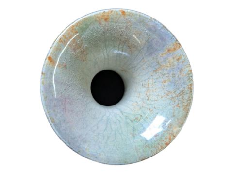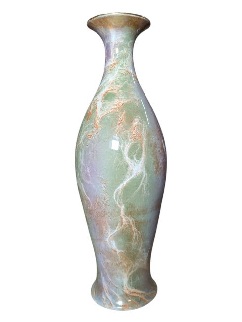 Baluster-shaped vase with flared neck, orange & white marble lustre effect on green & lilac ground