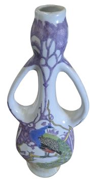 Hand-painted porcelain Art Nouveau style twin handled vase