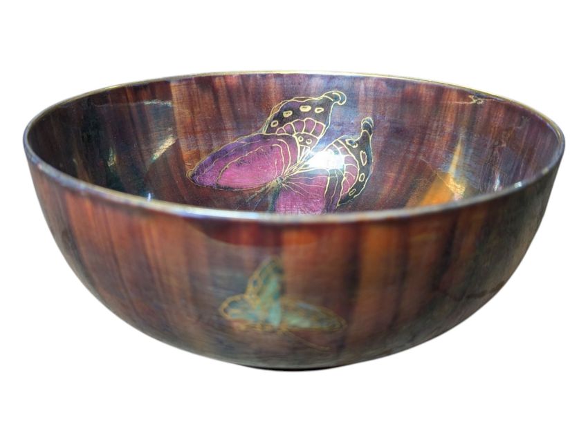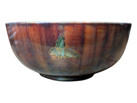 Brown and gold in a lustre finish with butterfly motifs