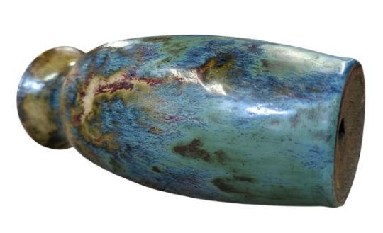 Stoneware gradient glaze in copper green over oxblood red baluster vase