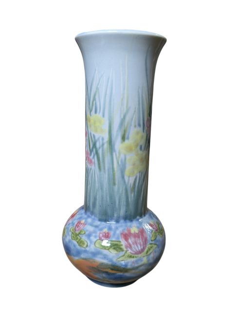 Two hand-painted ceramic vases, one of baluster form, one bottle vase