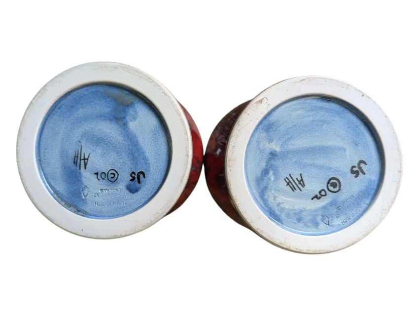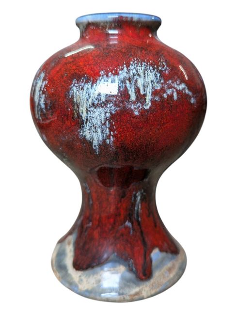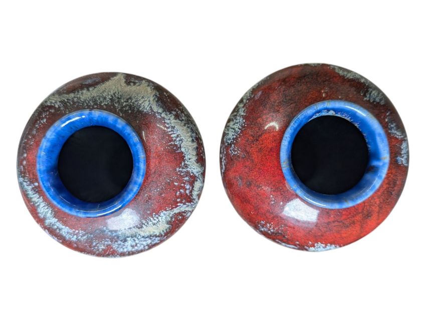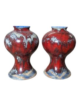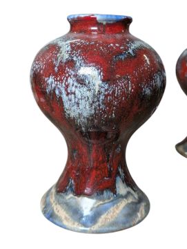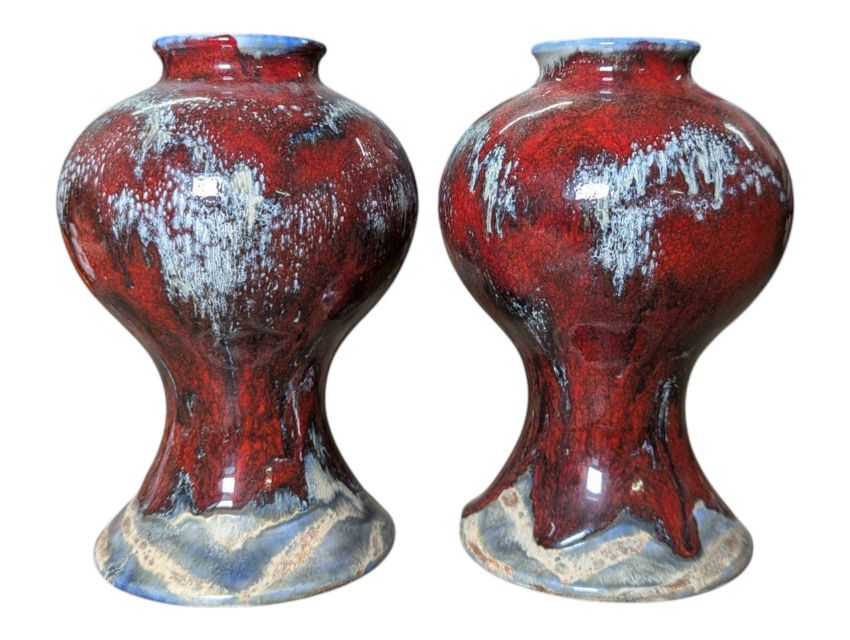 Pair of drip-glazed bulbous and tapered red, blue & white vases