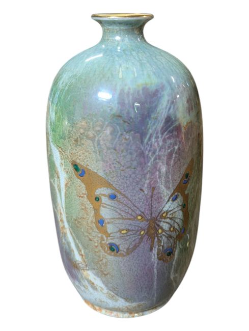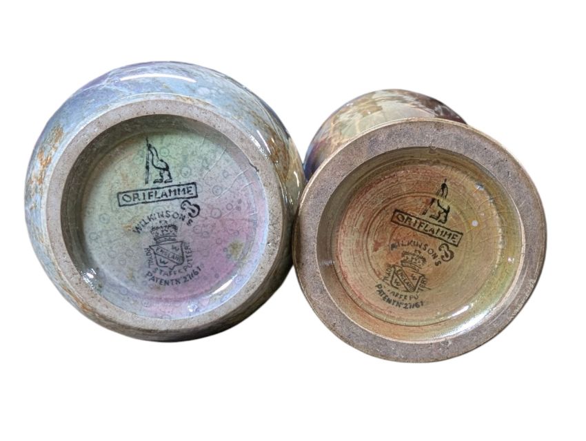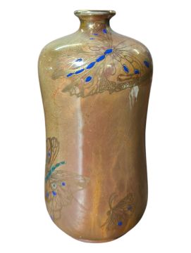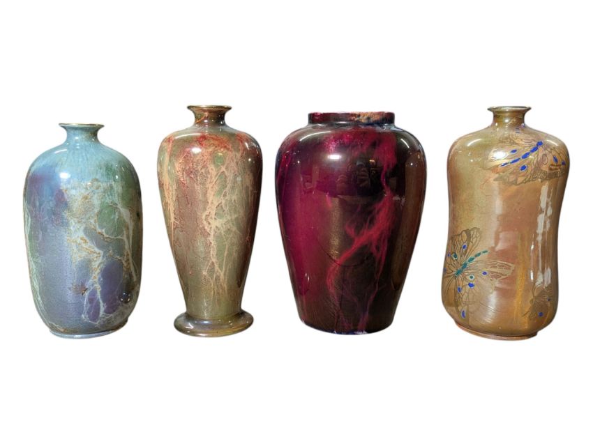 Various shaped vase decorated with lustre mable motifs on yellow mottled ground
