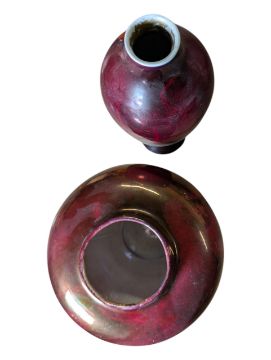Two baluster-shaped vases in purple with a dark marbling effect and a lustre finish