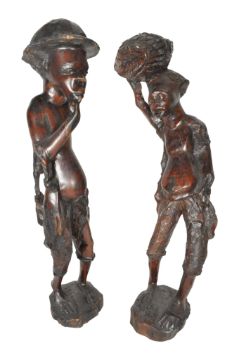Four 20th century vintage carved hardwood African tribal figures. All raised on shaped circular bases.