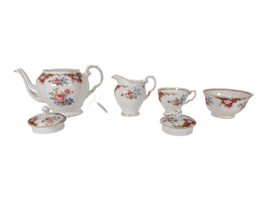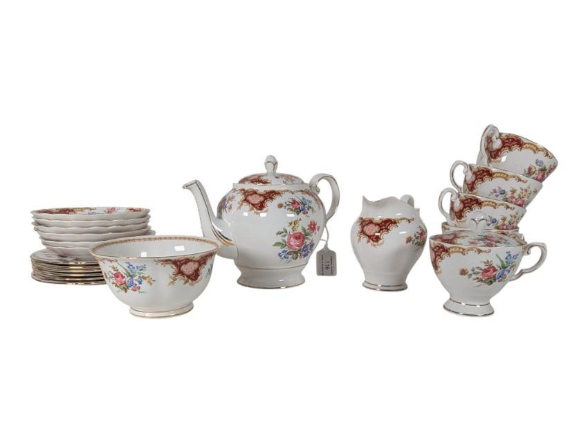 Tuscan, England - Windsor Pattern - A vintage 20th century fine bone china tea service. Including sugar bowl, cups, saucers, teapot, milk jug and side plates (trios)