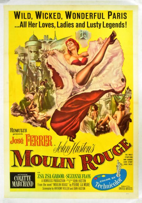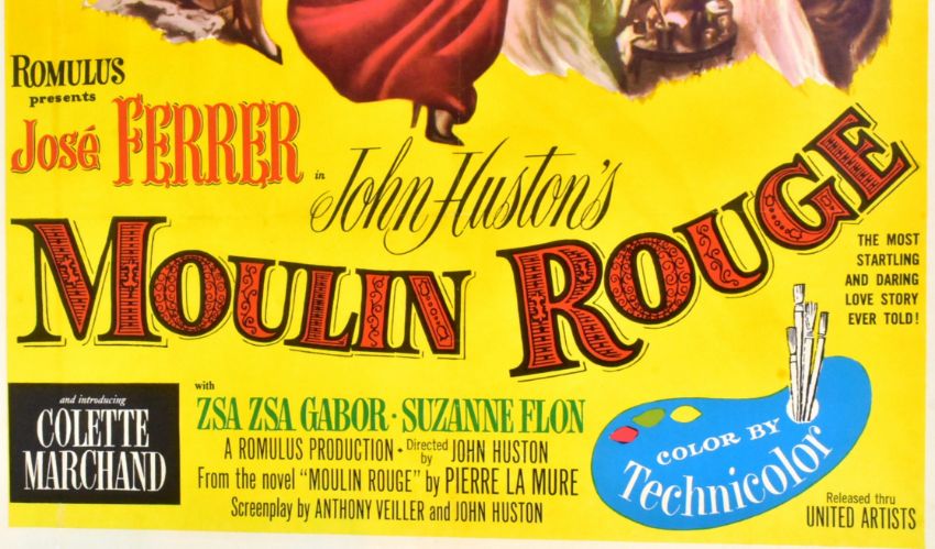 Moulin Rouge (1952 romance drama directed by John Huston) - original US one sheet movie poster, with central artwork on a yellow ground, with production details to lower edge. Professionally linen backed. Rolled. Measures 27" x 41", approx.