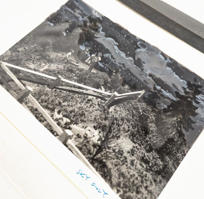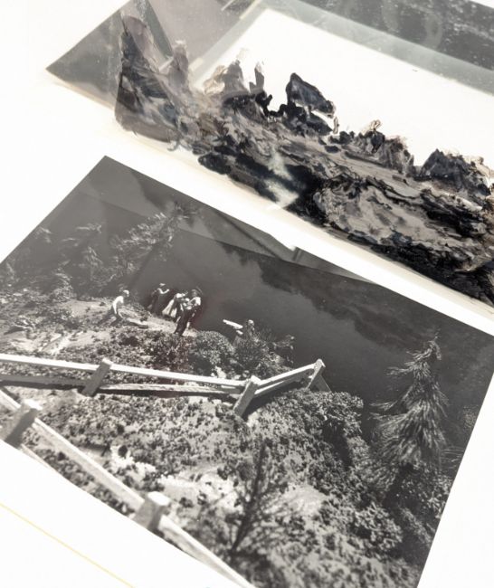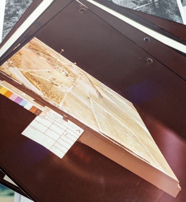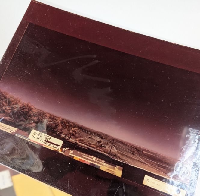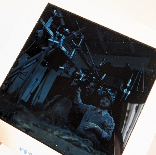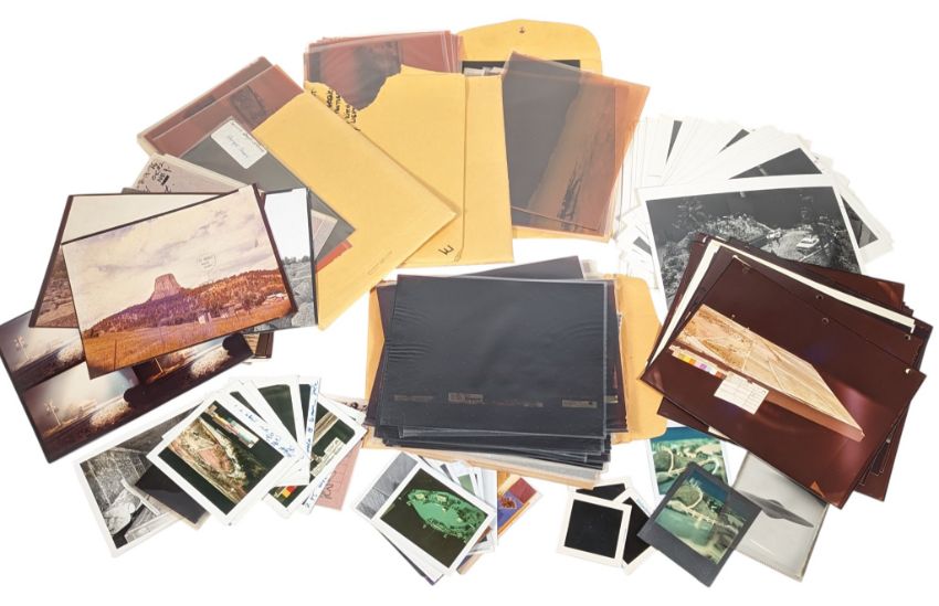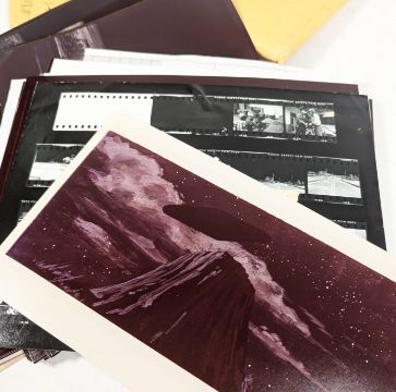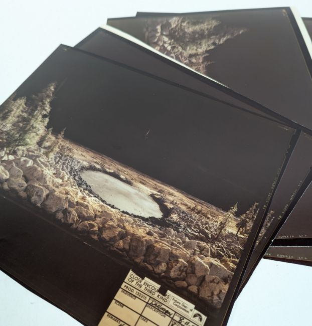 Close Encounters of the Third Kind (1977) - Duglass Trumball Collection - a large collection of production used photos, transparencies and negatives, used primarily in creation of the 'Crescendo Summit' scene, where the fictional citizens of Muncie ascend Crescendo Summit to witness the UFO's fly by their town. The collection includes; contrast control negatives, vericolour negatives, a collection of photographs of the model miniatures built and posed to imitate the scene, colour transparencies, location photographs, and other. Handwritten notes from the production team to several of the items.
