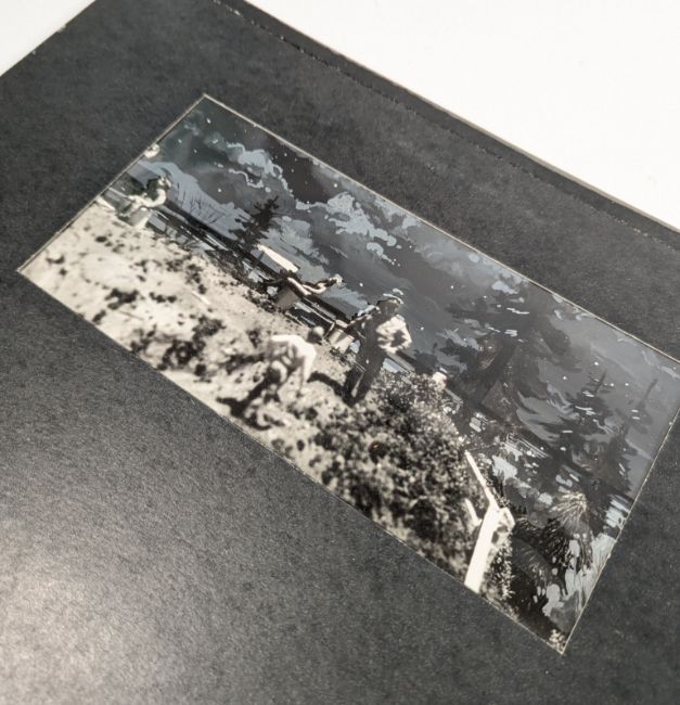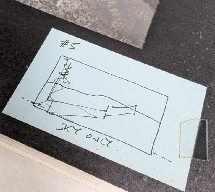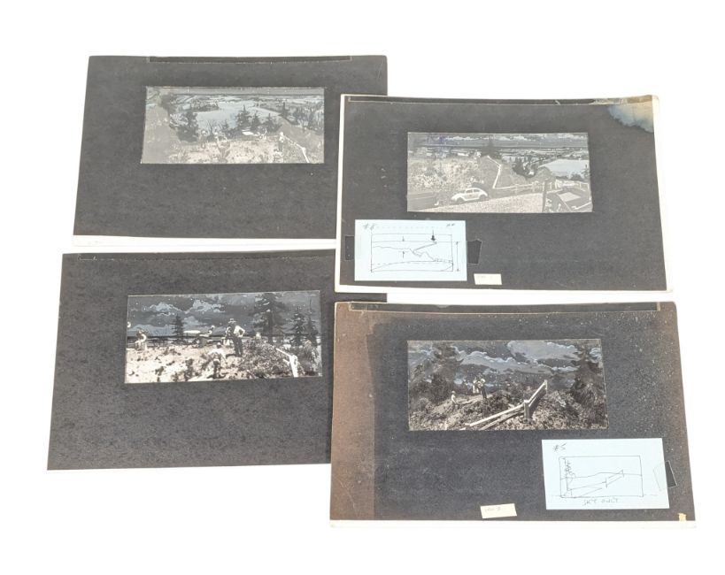 Close Encounters of The Third Kind (Columbia Pictures 1977) - Douglas Trumball Collection - a collection of 4x hand-illustrated matted visual effects storyboards. The storyboard depicts scenes of the fictional citizens of Muncie gathering on Crescendo Summit to watch the UFO's fly by their town. The storyboards feature photographs of model miniatures, posed to simulate the Crescendo Summit scenes, each with a hand painted acetate sheet painted by production illustrator George Jenson. The painted acetate layers provide a reference to the night sky in Muncie to assist in creating the forced perspective projected backgrounds. The photographs and painted acetate layer are framed and taped down to a black matte mountboard, with 2 featuring hand drawn reference sketches to the corner. Each storyboard measures approx. 25cm by 37cm. With certificate of authenticity from Prop Store.