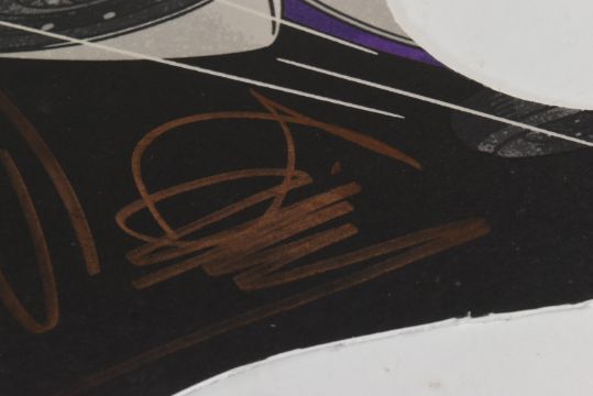ARTISTS RE-SALE RIGHT. Buyers of the re-sold art of living artists will be charged the royalty where applicable. Currently this is 4% on any item sold at 1000 Euros or over, diminishing from 50,000 Euros. VAT is not applicable on this charge. Further details can be obtained from artistscollectingsociety.org.