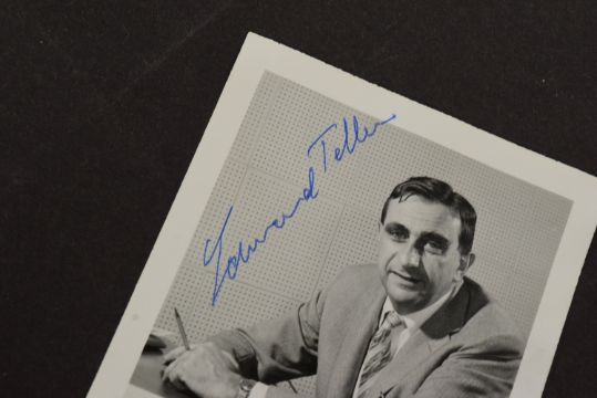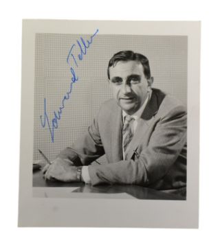 Science / Hydrogen Bomb - Edward Teller (1908-2003) - autograph on a small black and white portrait photograph issued by the Information Division, Lawrence Radiation Laboratory, University Of California. Signed in blue ink across a light edge of the image. 3.5" x 3".
