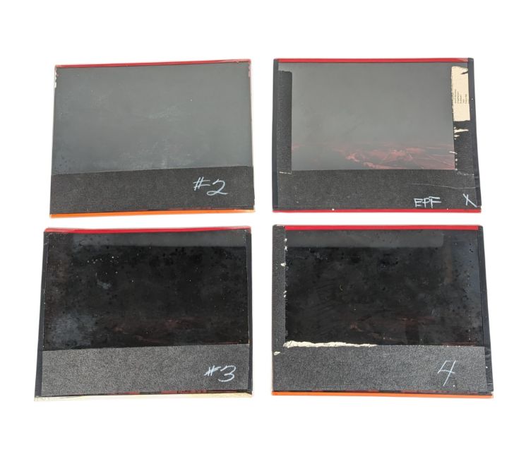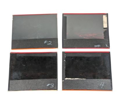 Close Encounters of The Third Kind (Columbia Pictures 1977) - a collection of 4x production used projection plates featuring images of the night sky in Muncie Indiana. The plates were used during production while shooting the scenes on the Crescendo Summit, projecting an image of the night sky onto a 100-foot wide screen to simulate the view of Muncie. The plates feature a variety of images of the night sky to accommodate possible filming angles. Red and black tape to the extremities of the plates, with the odd smudge caused by production use. The plates measure approx. 20cm by 26cm. Includes a certificate of authenticity from Prop Store.