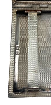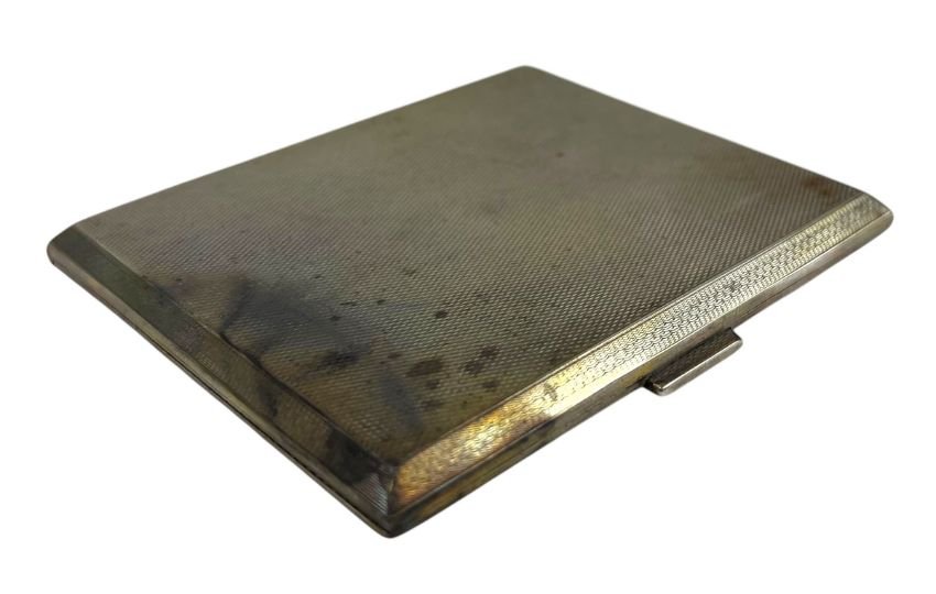 A 20th century George V hallmarked silver cigarette case. The case having engine turned design. Hallmarked year 1929, Birmingham. Sponsors mark rubbed. Weight approx. 93g.