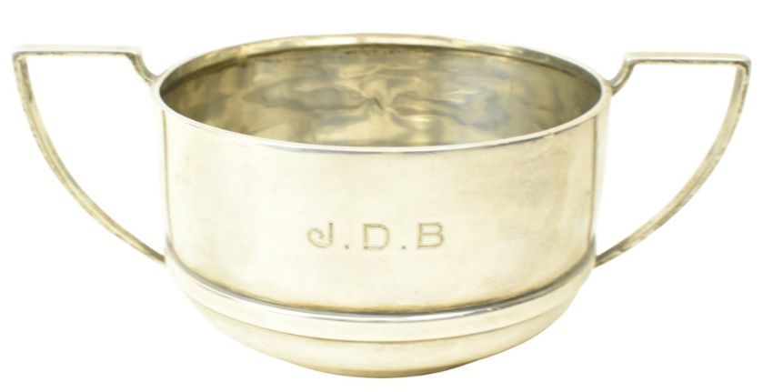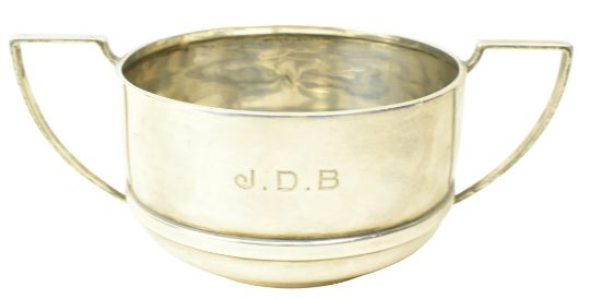 A 20th century George V hallmarked silver twin handled bowl. Hallmarked year 1923, Birmingham. Sponsors mark for William Hutton & Sons Ltd. Weight approx. 121g