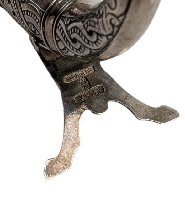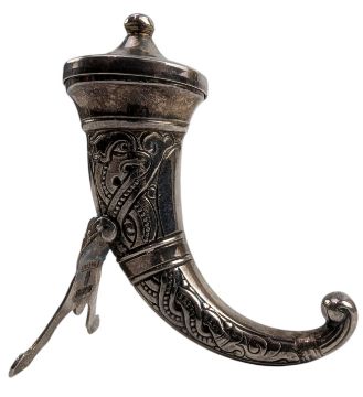 Theodor Oslens EFTF - a Norwegian sterling silver pepperette / salt shaker in the form of a horn. Stamped Sterling & maker mark. Together with a continental German (?) 800 silver stamp book in form of a suitcase. Weight approx. 44g.