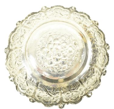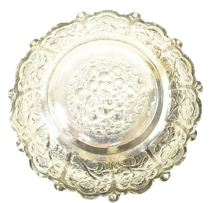A 20th century Indian silver bowl. The bowl being decorated with repousse floral design. Unmarked. Tests indicate silver. Weight approx. 99g.