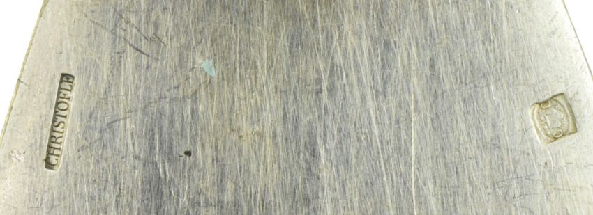 A set of early 20th century French Christofle 'Berain / Clement Marot' silver plated fish server. The set to include a fish fork and a fish serving knife / server. Stamped 'Christofle' and maker mark. Total weight approx. 209g.