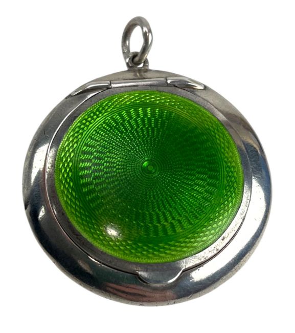 An early 20th century George V hallmarked silver and green guilloche enamel compact by Asprey London. Hallmarked year 1910, Birmingham. Sponsors mark for Asprey & Co Ltd. Weight approx. 33.5g