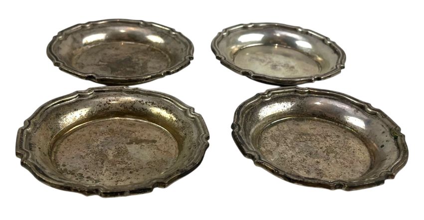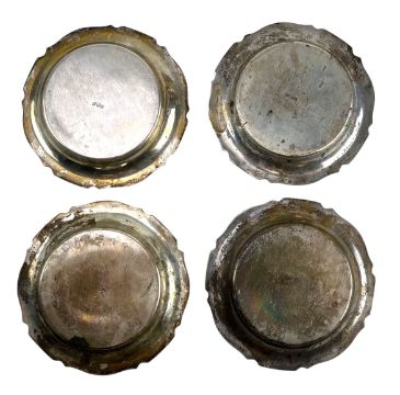 Four 20th century 1960s Egyptian 900 standard silver trinket dishes. The 3 components of the hallmark are stamped to the base of each dish. Total weight approx. 211g.
