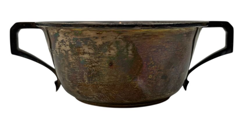 A George V hallmarked silver twin handled bowl. Hallmarked year 1931, Birmingham. Sponsors mark for William Neale & Son Ltd (from 1909). Weight approx. 124g.