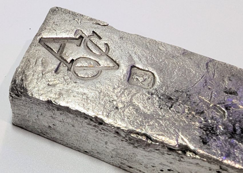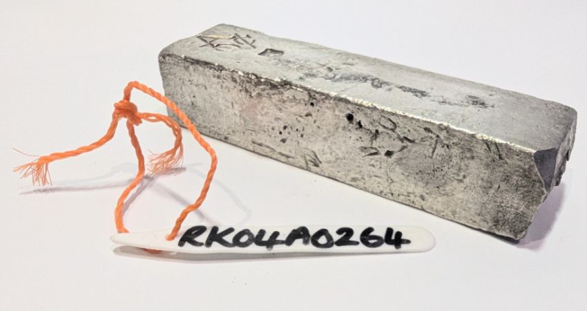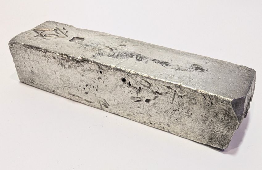 A maritime Dutch East India Company V.O.C. (Vereenigde Oost-indische Compagnie ) silver ingot bar 1739. The silver ingot was salvaged from the shipwreck of the Rooswijk in 2004. The ingot having V.O.C conjoined stamp with A for Amsterdam, together with assay masters stamp of a rampant goat. Weight approx. 1960g / 69.13 ozt / 1260.30 dwt. Salvage tag number: RK04A0264