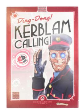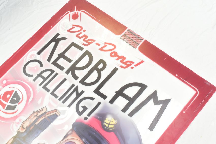 Doctor Who (BBC sci-fi series 1963 - present) - Kerblam! (2018 Thirteenth Doctor era) - large original sign front from the episode 'Ding-Dong Kerblam Calling!' depicting a Kerblam robot waving. Featuring text to the lower edge 'Kerblam! Fulfillment Centre - Kanduka' and the Kerblam logo to the middle-left centre. Custom printed acrylic, originally mounted on a lightbox. Signs similar to this can be seen in the main Kerblam! foyer and warehouse throughout the episode. Some tape to the lower edge reads 'DWII - Ep8 - Main Foyer'. Some signs of wear from production and storage, but generally good. Such large pieces of set dressing from popular episodes are rare to find. Measures approx: 160cm x 113cm.
