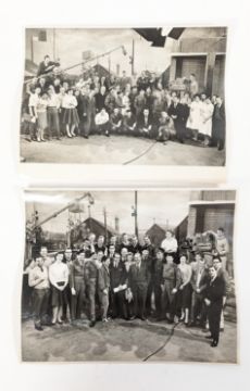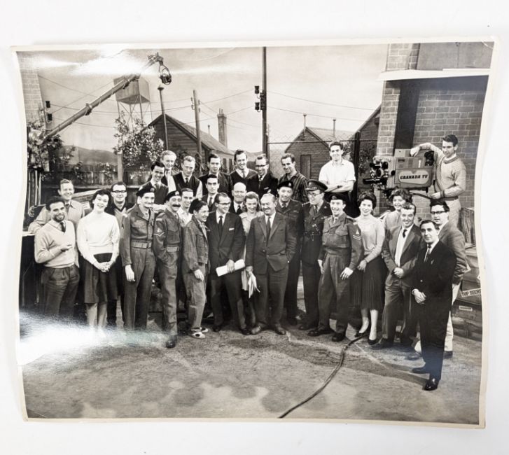 The Sid Colin Collection - The Army Game (ITV Sitcom 1957-1961, created by Sid Colin) - two large format 'end of series' cast and crew photographs from the early sitcom. Both featuring the cast, crew and writers on set. Cast members present include Alfie Bass, Frank Williams, Geoffrey Palmer, Mario Fabrizi, Harry Fowler and others. Largest 12x9", approx. Some handling wear, but generally good.