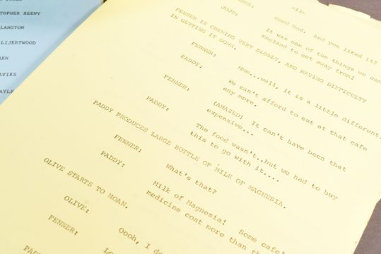 Ronald Wolfe (1922-2011) was a British television, radio and cinema screenwriter, and one half of the Ronald Wolfe and Ronald Chesney writing partnership. Wolfe wrote for some of the biggest stars in Britain from the 1950s to the 1990s, and had major success with the sitcoms The Rag Trade, Meet The Wife and On The Buses. In later life he taught comedy writing at City University, London. He passed away in 2011. The items being offered for sale in this special auction are direct from his estate, and represent an important archive of British comedy, television, and radio history.