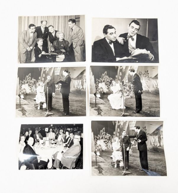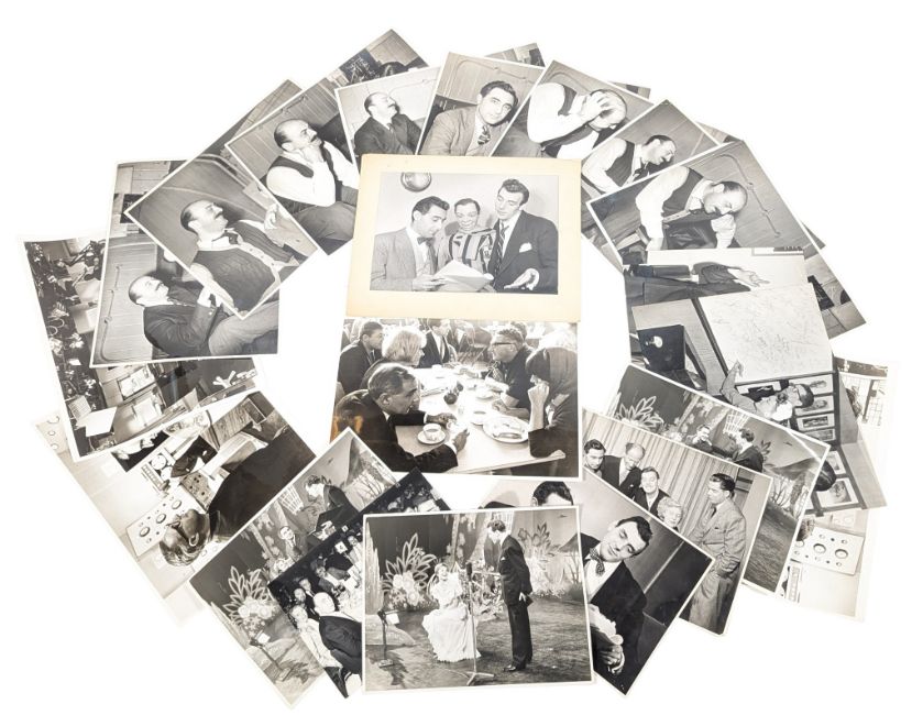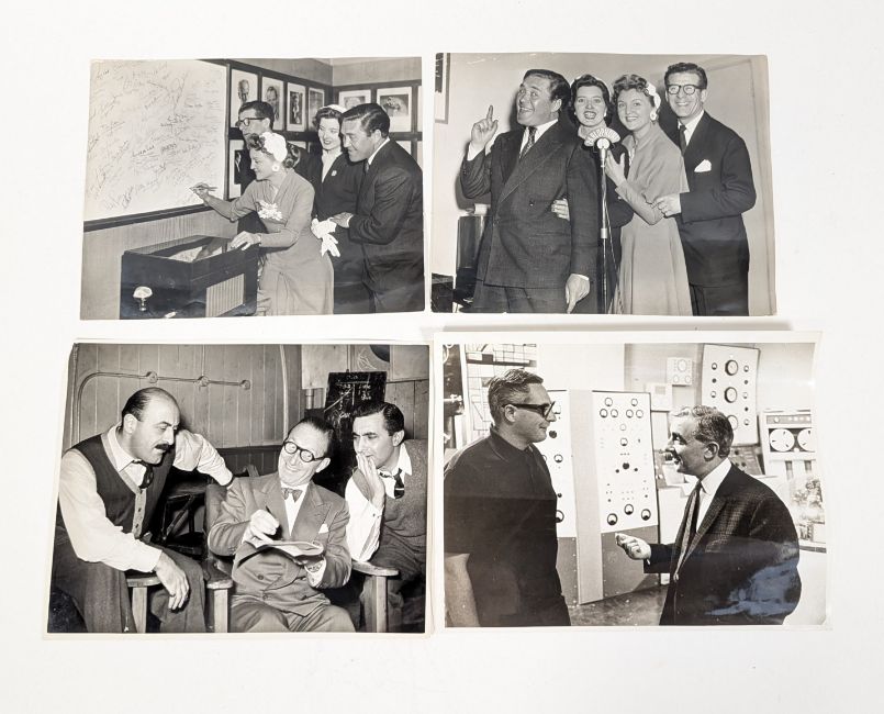 1) a 1952 press photograph of Leave It To Me showing the Cicely Courtneidge and Audrey Cameron with the writers, BBC info to reverse.