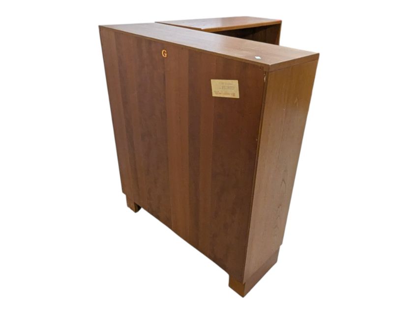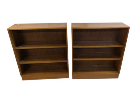 G-Plan Furniture - Two 20th century G-Plan teak open window bookcases. The bookcases raised on a plinth base with a series of open window shelves. Finished with a panel back. Measures approx: 92x81x28cm