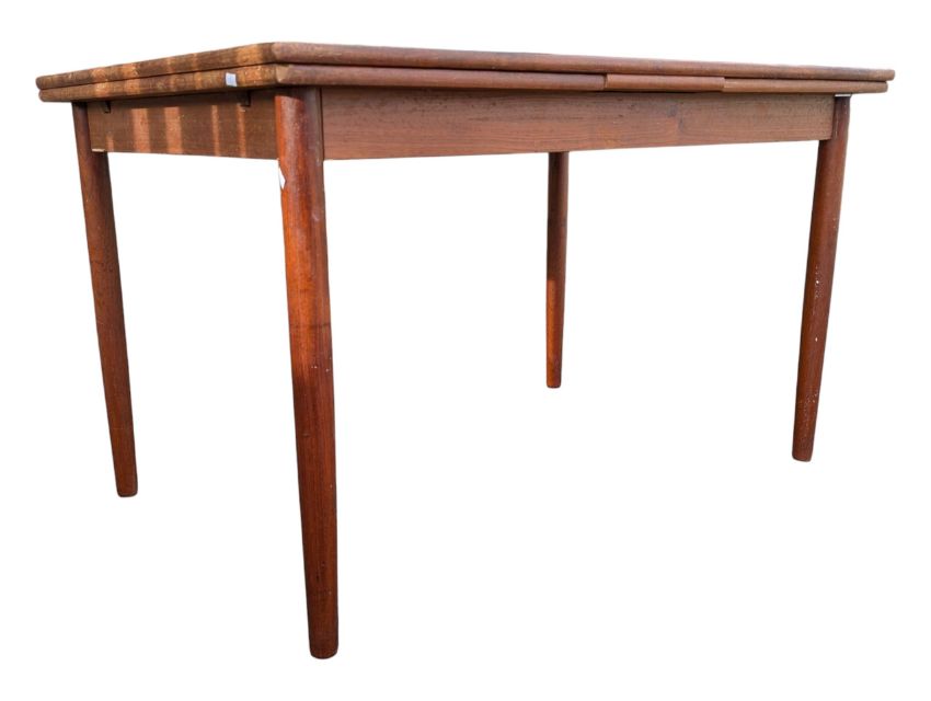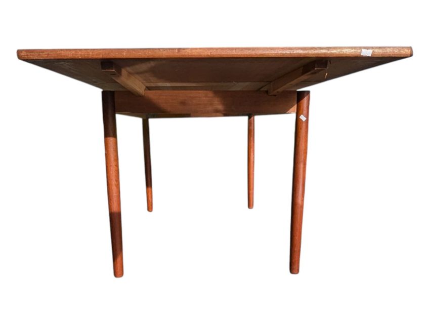 Niels Otto Moller - JL Moller - A 1960s Danish retro teak wood extending dining table having a flat top and smoothed corners raised on tapering angled legs. Measures approx: 75x82x124/222 extended cm