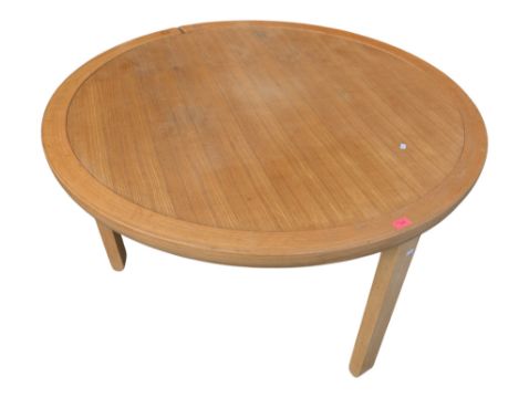 British Modern Design - A mid century teak wood circular dining table. Raised on squared legs with a circular teak wood dining table atop. Measures approx: 71x122cm