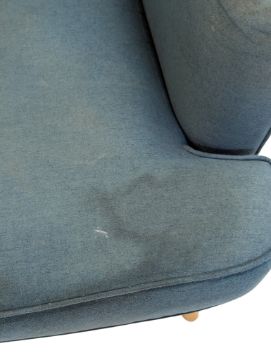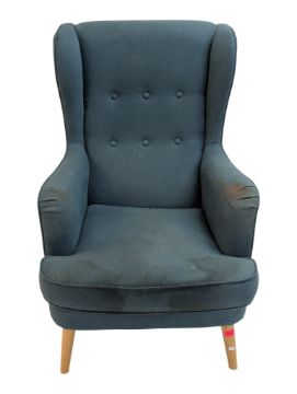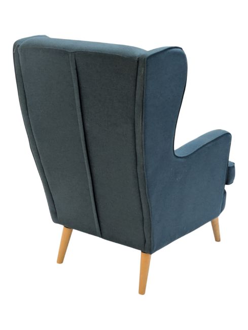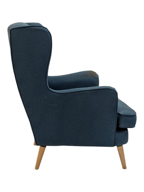 Contemporary Modern Design - A Habitat ' Callie' contemporary blue wing back armchair. The chair having shaped winged back rests over arms. All raised on tapering wooden supports. Measures approx: 108x74x90cm