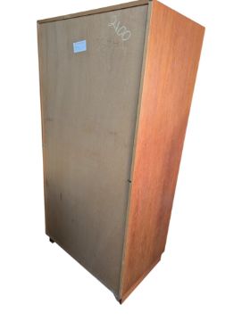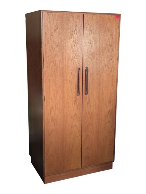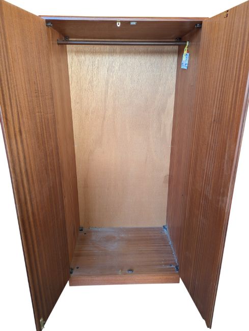 G-Plan - Fresco - A vintage mid 20th century G-Plan Furniture Fresco Range teak double wardrobe. The wardrobe raised on an inset plinth base with twin doors to front. Having shaped wooden handles. Measures approx: 176x85x59cm