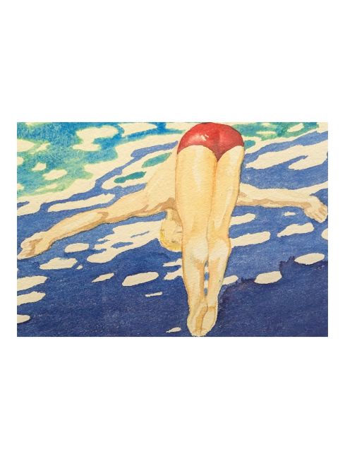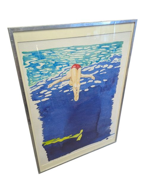 A contemporary print depicting a diver entering the water. Signed and numbered. Framed and glazed. Measures approx: 82x61cm