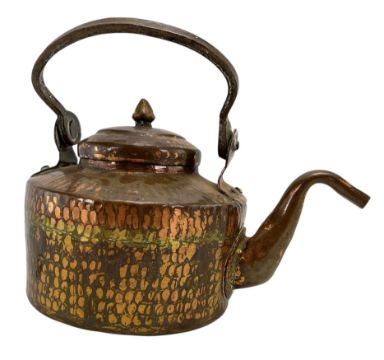 An Arts & Crafts 3 piece hammered copper tea set. Comprising teapot and two pots each piece with hammered decoration with gadrooned detailing.