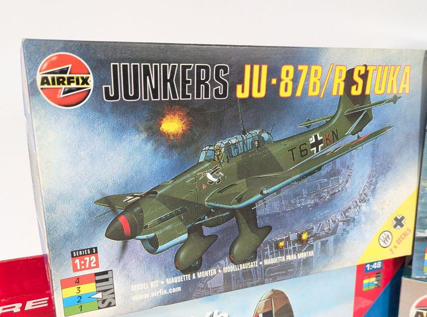 Model Kits - a collection of 4x assorted unused Airfix model kits of various scales. To include: No. 03030 Junkers JU-87B/R Stuka 1:72 scale, No. 05280 Vosper Motor Torpedo Boat 1:72 scale, No. 05007 Catalina PBY-5A 1:72 scale, and No. 74100 Spitfire MkVb 1:48 scale.