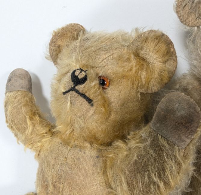 Teddy Bears - a collection of 3x assorted early 20th century vintage soft teddy bears, all having blonde mohair. Largest measures approx. 42cm. Likely Chad Valley or Chiltern.