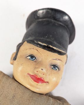 Dolls - a vintage c1940s/50s Dutch police-man doll with fabric body, composition head and wooded traditional clogs, believed to be a WWII Belgian liberation doll, together with a Norah Wellings fabric sailor doll. Largest measures 31cm.