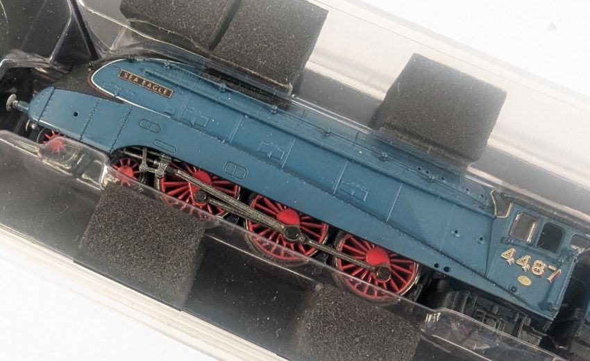 Model Railway - a boxed Dapol N gauge railway train set locomotive engine No. 2S-008-012D. Class A4 4-6-2 4487 "Sea Eagle" in LNER garter blue with valances.