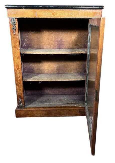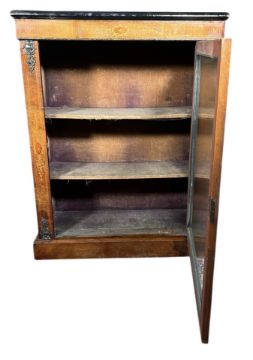 A French 19th century walnut pier display cabinet. The cabinet has a plinth base having a single glazed door revealing a selved interior. Gilt metal ormolu mounts with marquetry detailing. Rectangular top above.