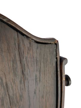 A George III early 19th century circa 1810 mahogany counter gentlemen's shaving mirror. The swing mirror of armorial form with circular pedestal support, all raised on shaped single drawer base with ball feet.