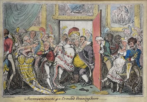 After George Cruickshank (British, 1792-1878) - Inconveniences of a Crowded Drawing Room - a 19th century hand painted etching on wove paper. Pub. Thos. McLean Aug. 1st 1835. Mounted, framed & glazed.